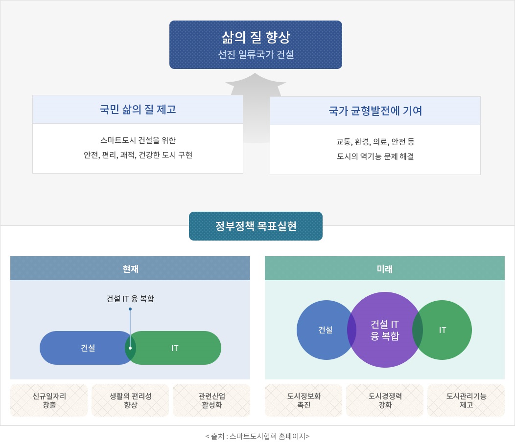 국토교통부에서 운영하는 스마트시티 종합 포털 smartcity.go.kr에서는 스마트 시티를 다음과 같이 소개하고 있다.