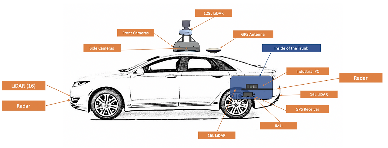 광각 카메라, 장초점 카메라 전방을 향한 PandarGT LiDAR(Solid-sate)와 기계식 회전 LiDAR인 Pandar64 LiDAR, GPS / IMU를 사용하여 수집된 데이터