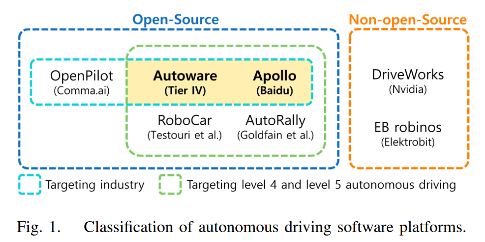 Open-Source Autonomous Driving Software Platforms: Comparison of Autoware and Apollo