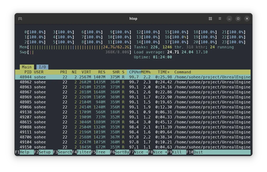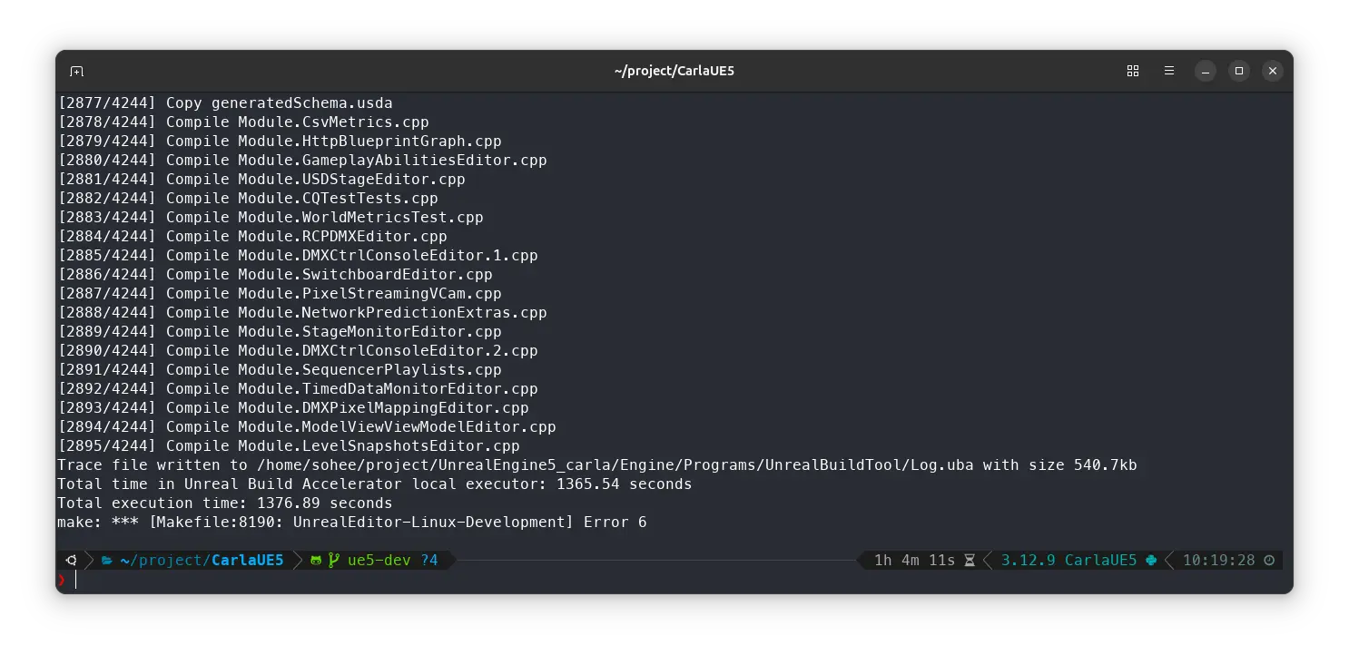 일단 빌드하는데 CPU 점유가 매우 높다.. 가장 최신 버전인 `ue5-dev` branch라서 그런지 빌드 오류도 발생했다..