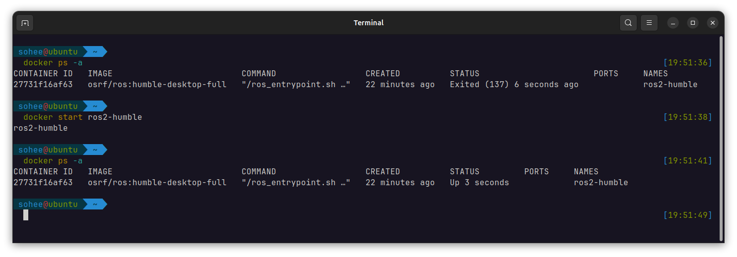 docker start ros2-humble