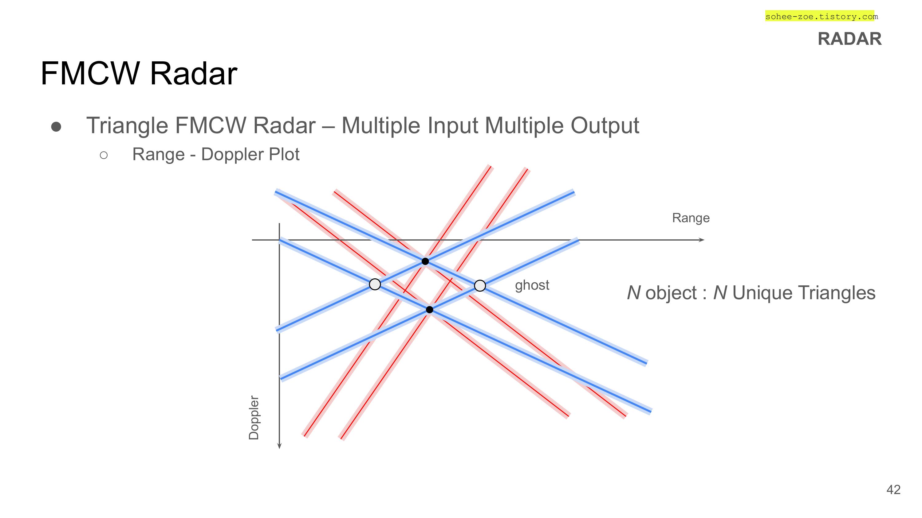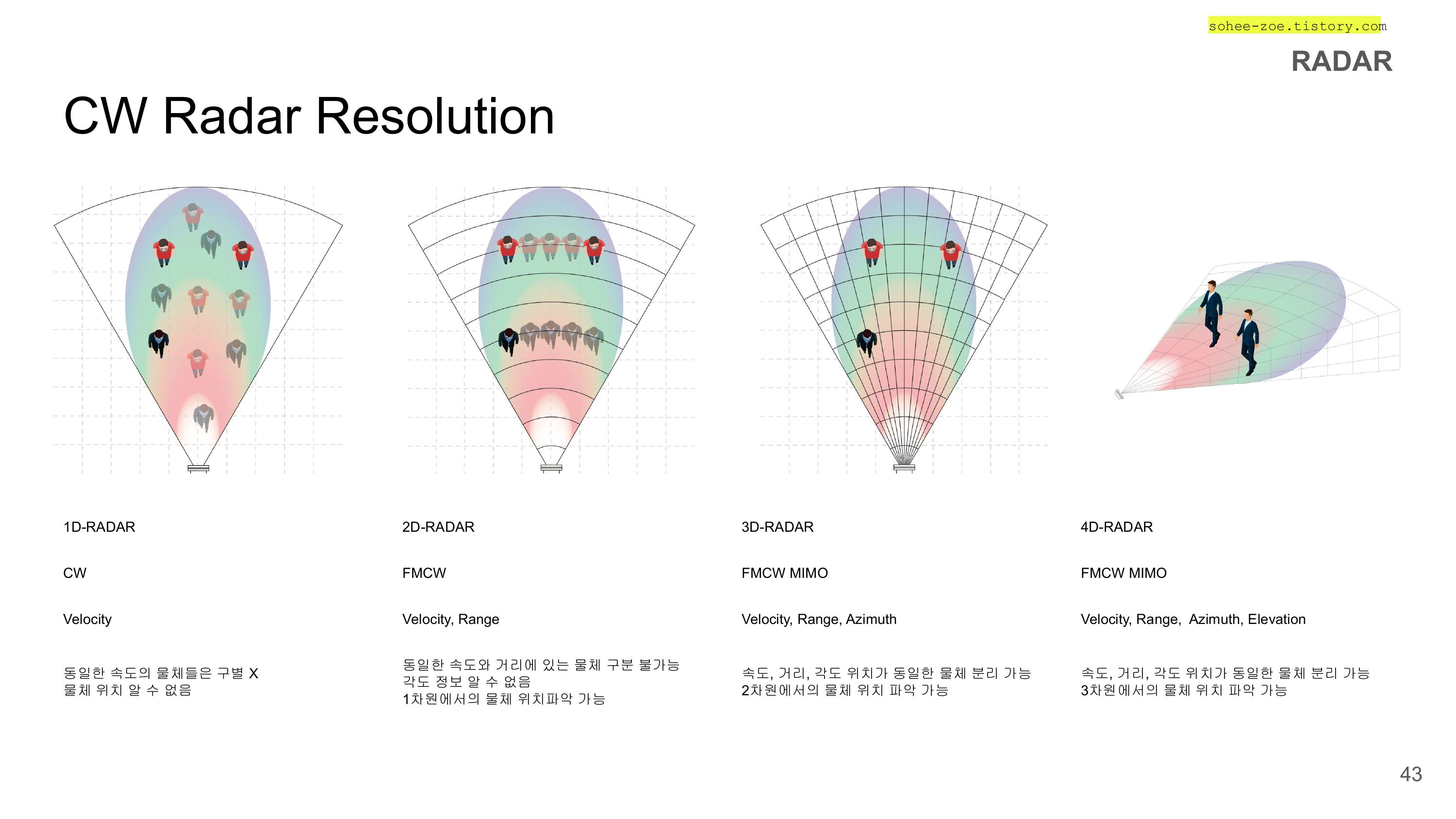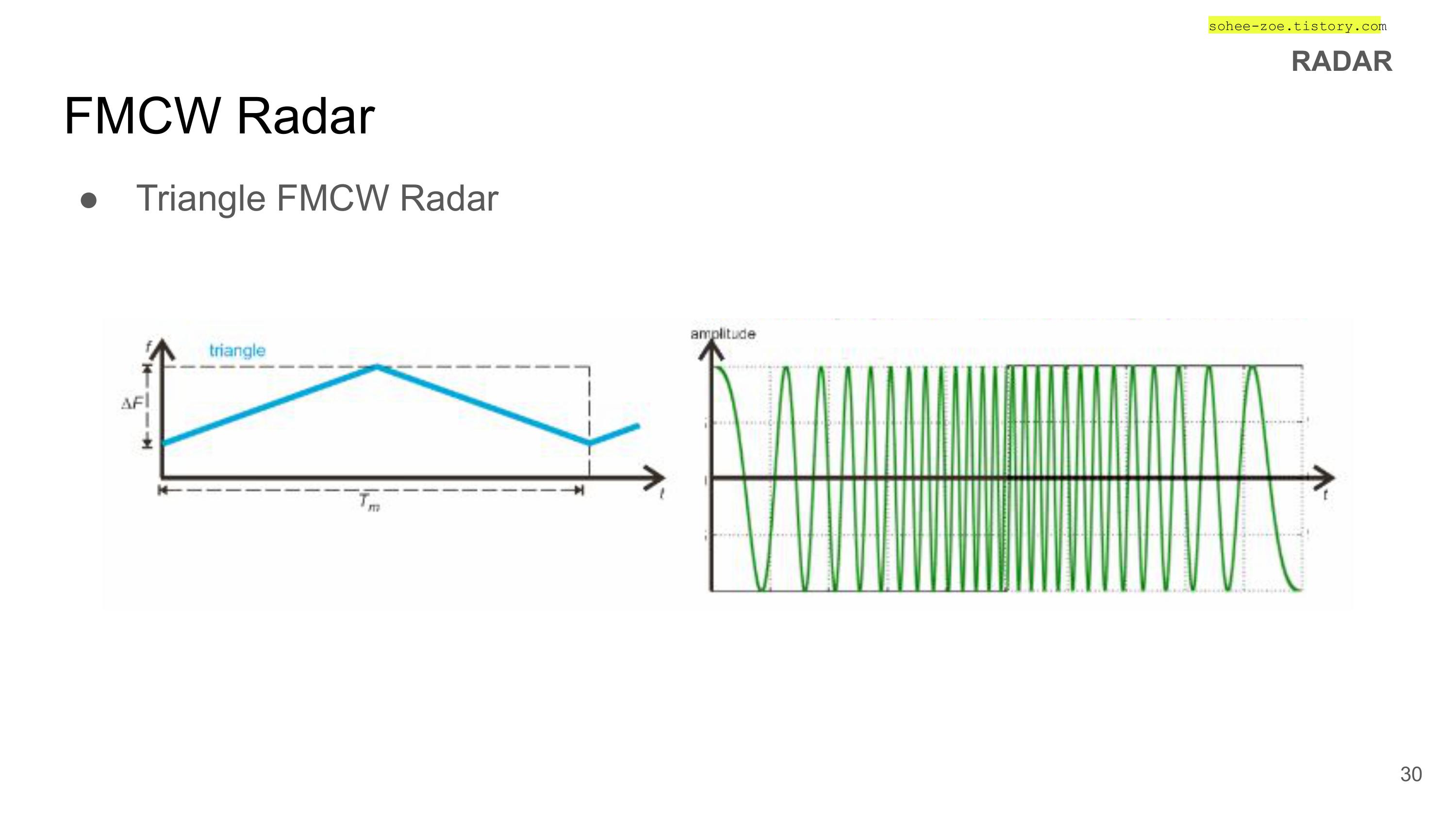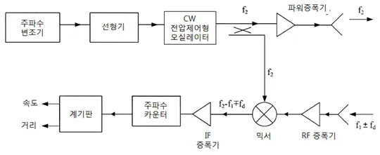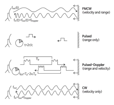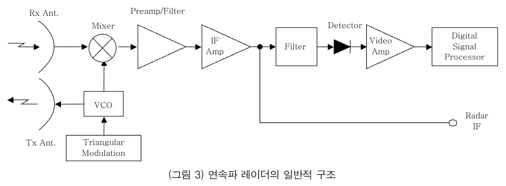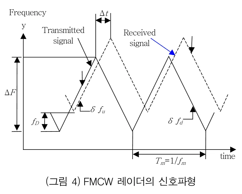 - CW 레이더의 거리 측정을 할 수 없는 단점을 보완한 주파수 변조형 연속파 레이더