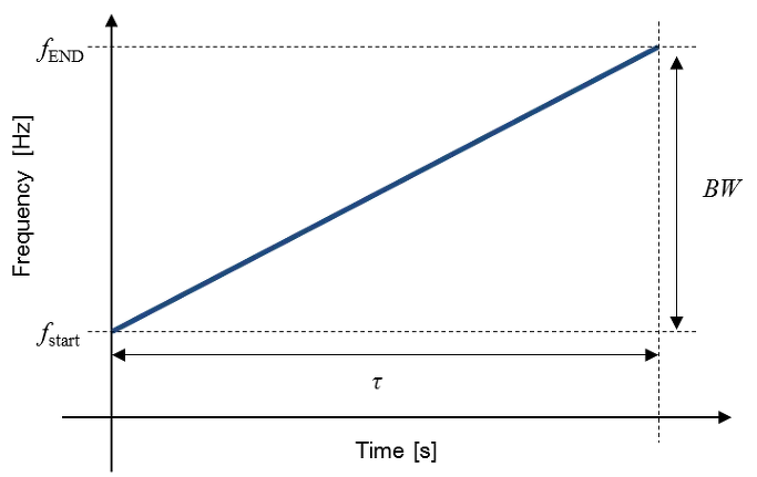 - LFM 파형: Linear Frequency Modulation: 주파수가 선형적으로 모듈레이션 되는 파형