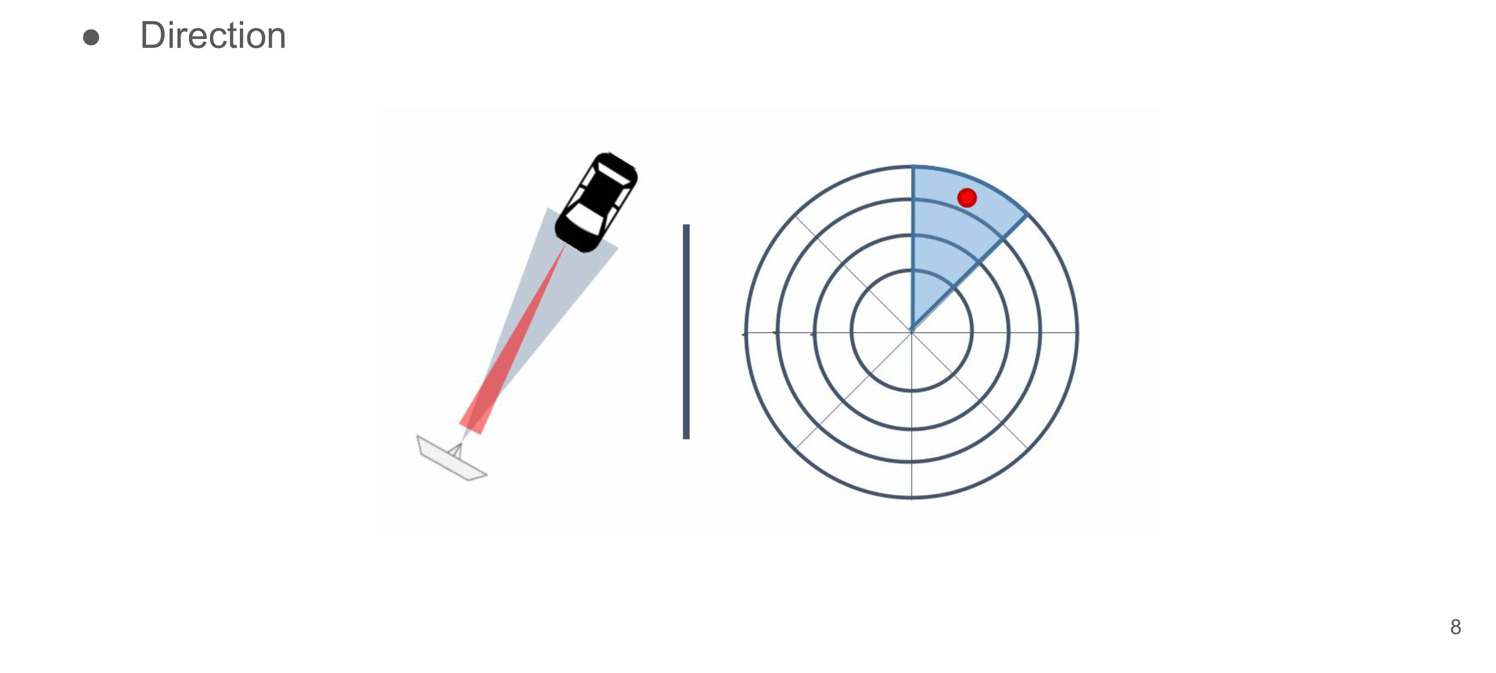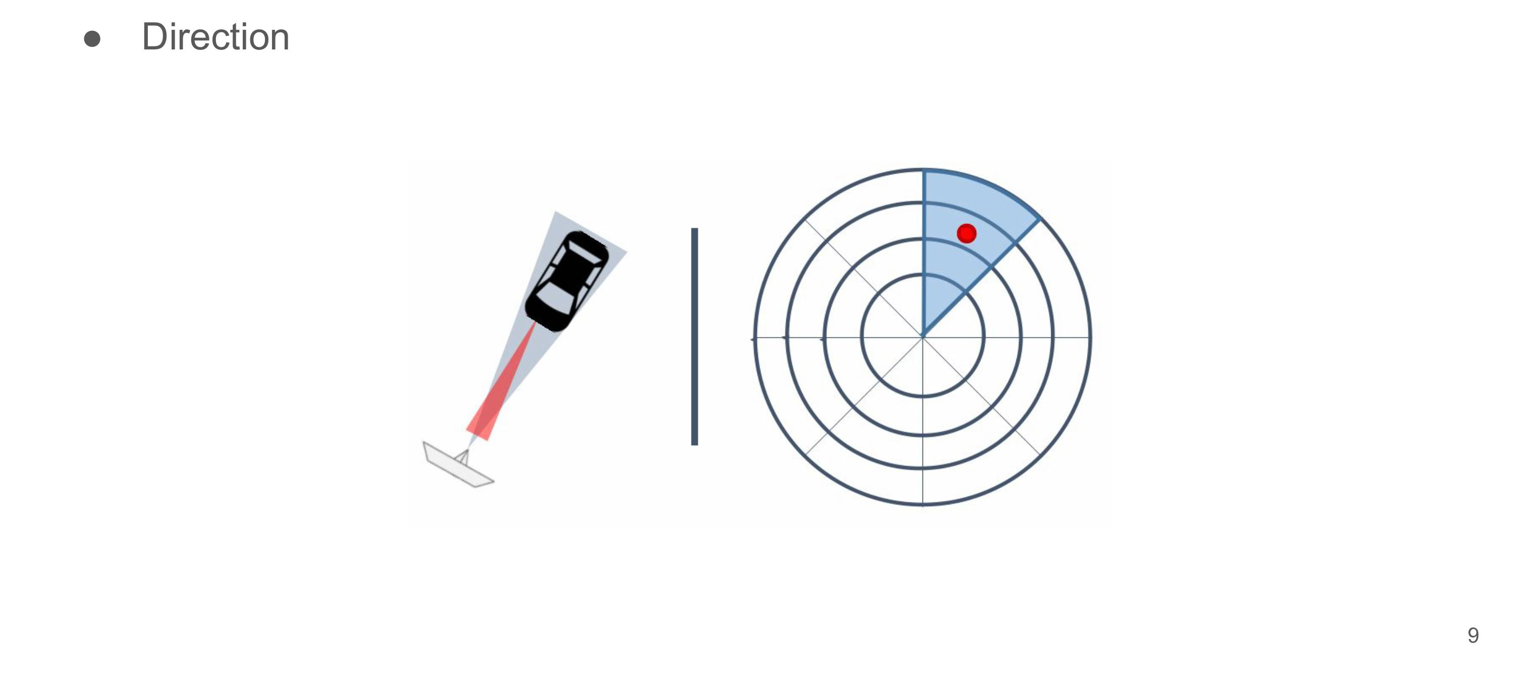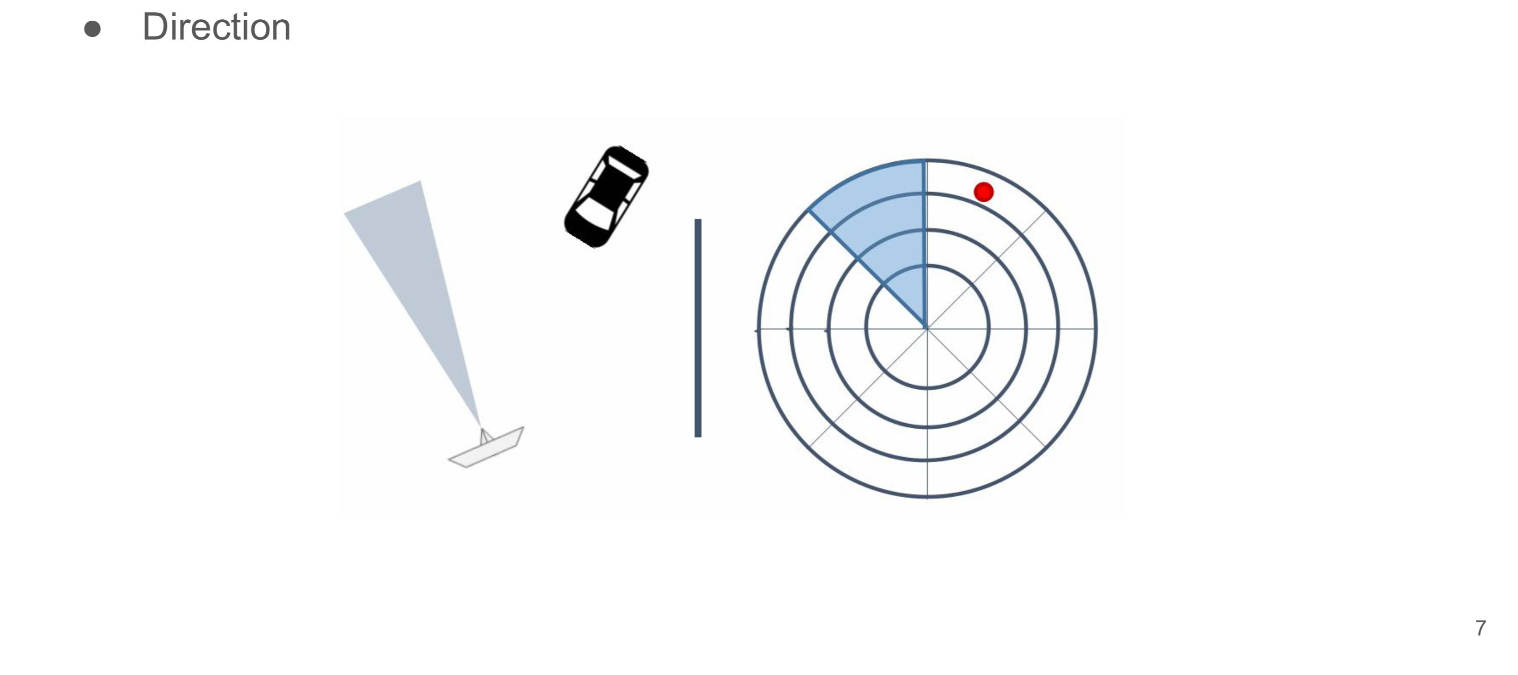 - 방위: 레이더로부터 송신한 전파의 방향, 수신된 전파의 방향을 통해 확인