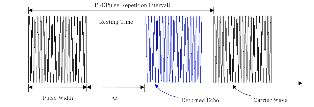 - 송수신을 동일한 시간대에 하지 않고 직사각형 펄스를 연속으로 송신하고, 각 펄스는 마이크로웨이브 신호의 짧은 버스트로 이루어짐