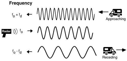 - 물체에 반사되어 돌아오는 반사파의 진동수(도플러 주파수 편이)를 통해 물체의 속도 측정