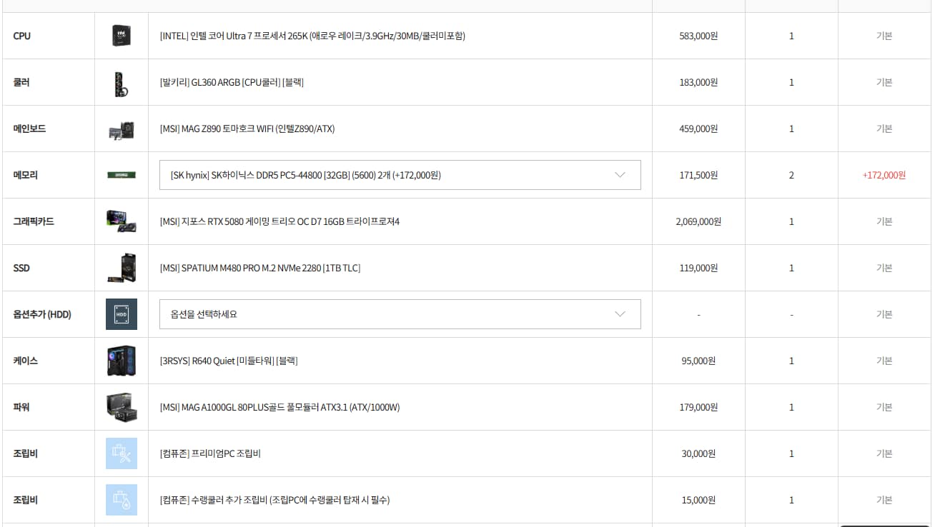 며칠을 더 기다리다가 컴퓨존 프리미엄 조립 PC에 RTX 5080이 생겨서 바로 결제를 했다.