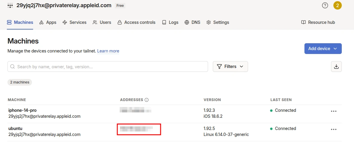 iOS 연결도 애플 정책상 로컬 네트워크만 접속이 가능해서 이 부분은 Tailscale이라는 VPN 도구를 이용해서 해결했다.