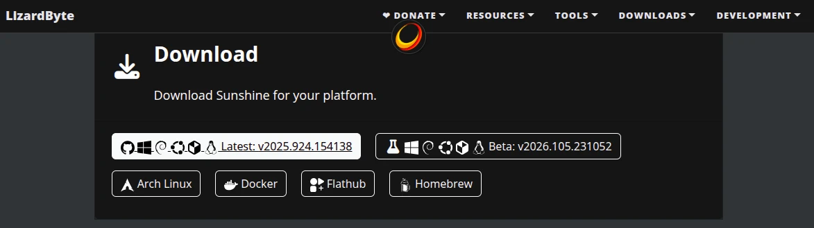 https://app.lizardbyte.dev/Sunshine - 페이지 최하단 Download 통해 깃허브 페이지 접속