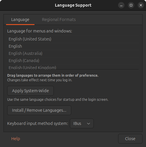 Keyboard input method system: `iBus` 선택