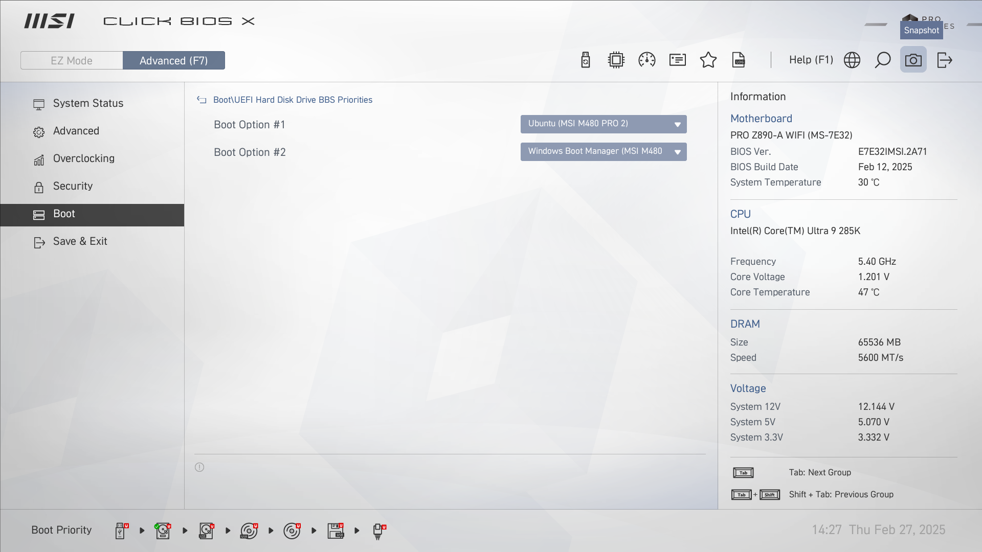나의 경우 EFI 부팅 순서가 USB - Windows - Ubuntu 순으로 되어있어 부트로더가 실행되지 않았다.