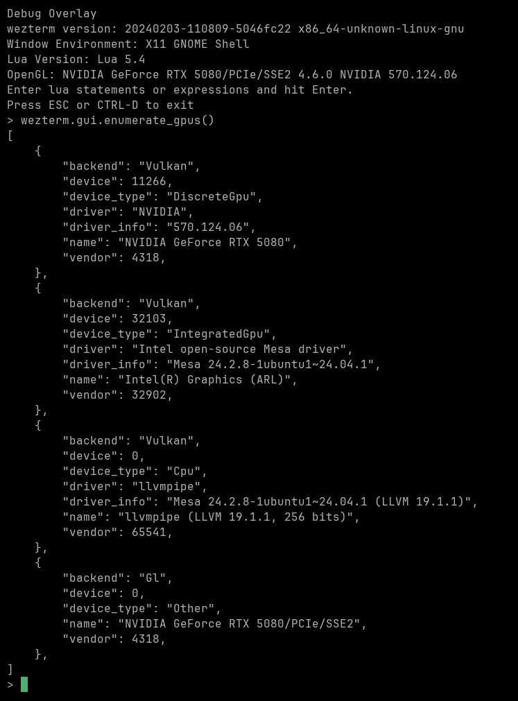 wezterm.gui.enumerate_gpus()